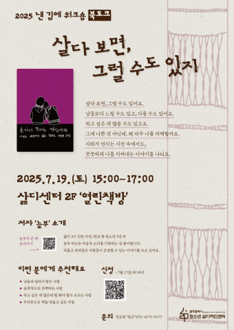 한편 이날 작가가 쓴 문장과 사진을 활용해 만든 기념엽서를 참여자에게 증정하는 이벤트도 열린다. 오는 17일(목)까지 온라인 신청을 통해 참여자를 모집하고, 자세한 사항은 삶디 전화 또는 인스타그램(@my_samdi)으로 문의하면 된다.