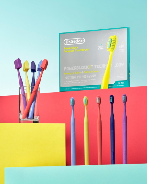 닥터세닥 파워블록 콤팩트 칫솔은 ‘개운함은 파워! 잇몸 자극은 블록!’이라는 슬로건을 바탕으로, ‘파워블록’이라는 명칭을 통해 제품의 두 가지 핵심 기능인 강력한 세정력과 잇몸 보호 기능을 동시에 담아냈다.